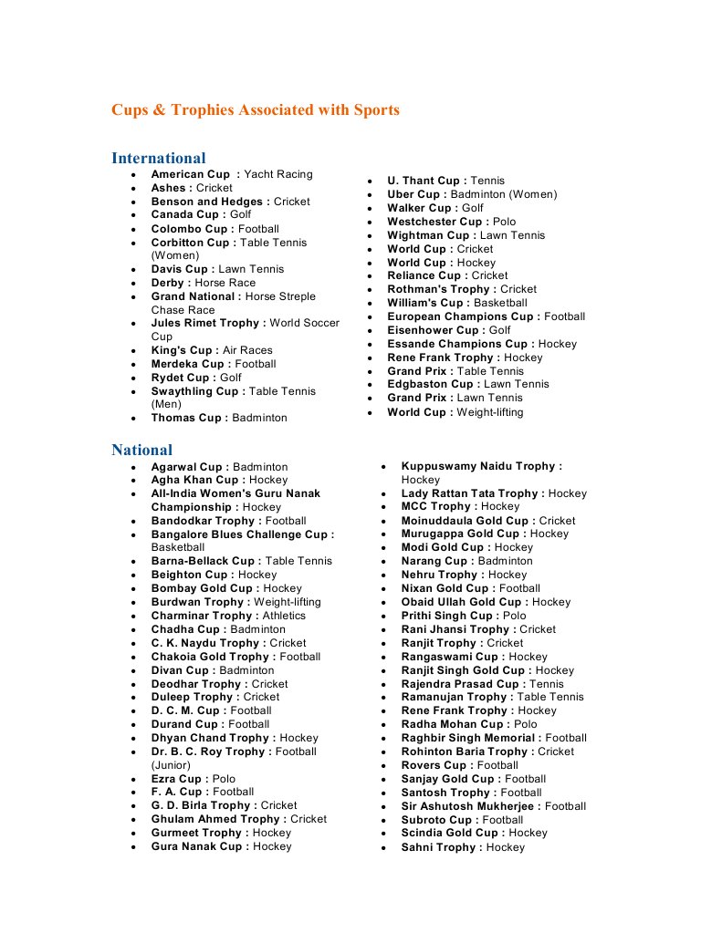 Trophies Associated With Various Sports And Games For Defence Exams from 1.bp.blogspot.com The 2019 davis cup winner is gokulam kerala. Will break down in 60 days in a commercial composting facility. Thomas cup is associated with which sports? It is a competition among teams representing member nations of the badminton world federation (bwf). Thomas cup and uber cup are associated with which of the following sports? 'thomas cup' is associated with | 'thomas cup' is associated with. List of international cups & trophies associated with sports as all we know that guiding is the very important part of the competitive exam preparation. None of these related posts: